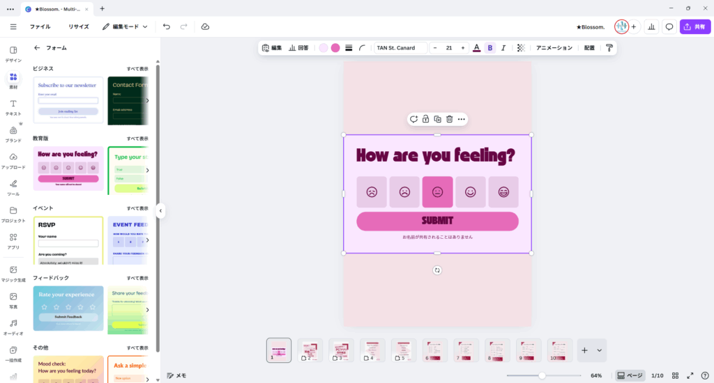 - フィードバックや申込、アンケート収集もCanva内で完結。