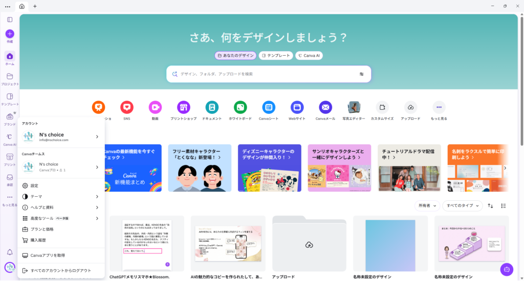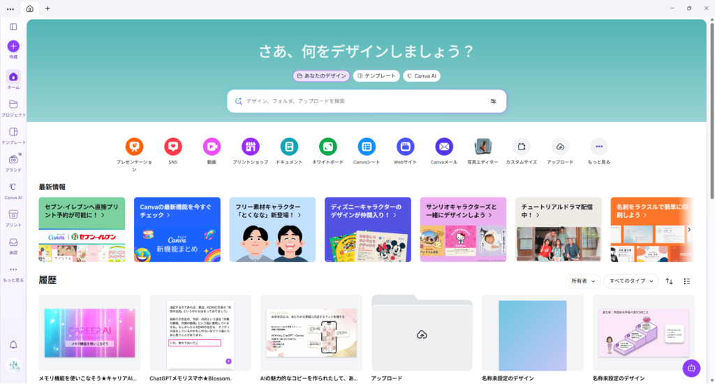① Canvaトップ画面