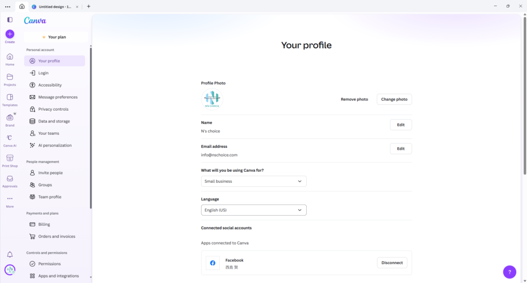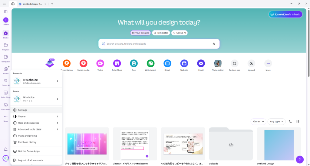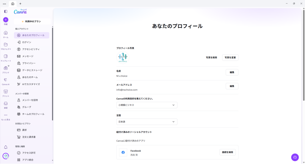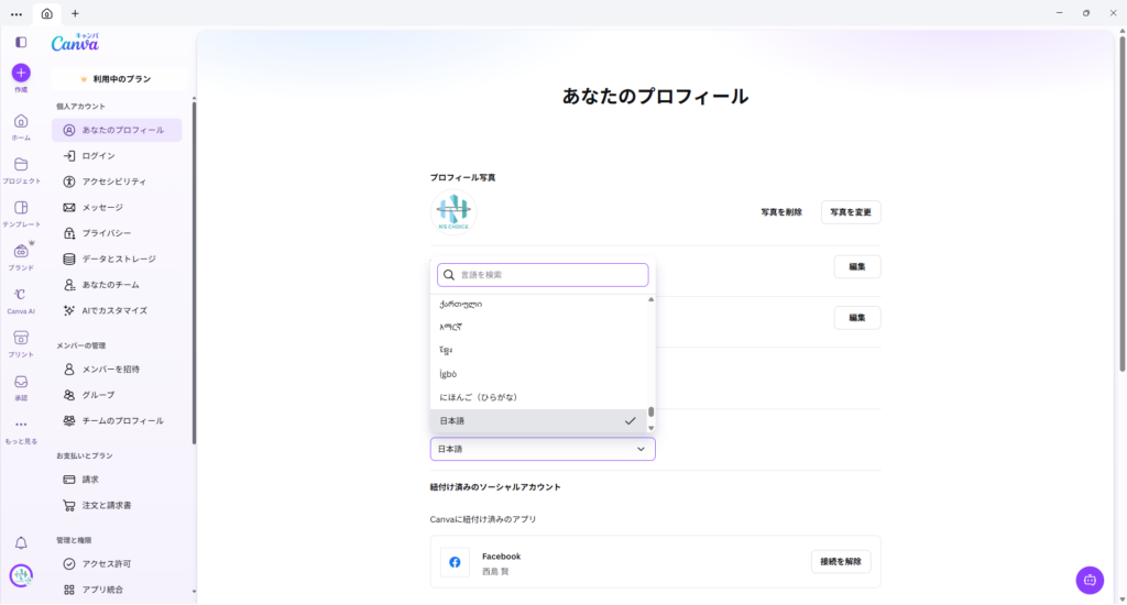 Canvaを英語表示に変更する手順