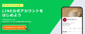 - ページ上部の「LINE公式アカウントを開設」ボタンをクリック