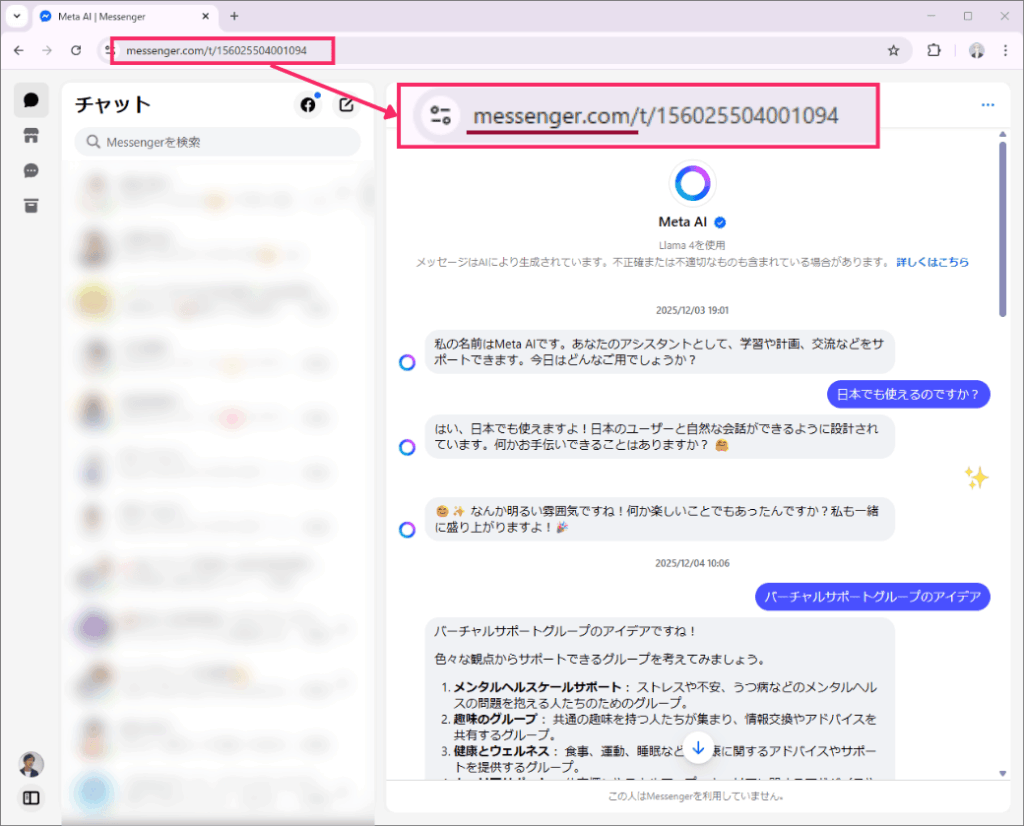| チャット履歴 | 引き続き確認できる |