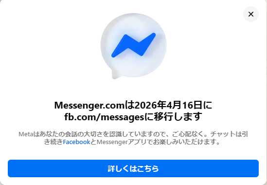 ・messenger.com → facebook.com/messages に移行